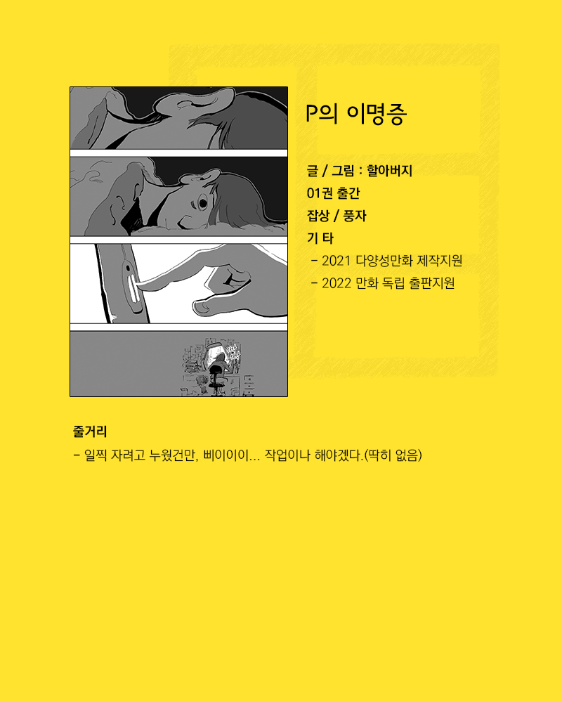 작품소개 P의 이명증 by 할아버지 2022. 12. 2. 공유하기 게시글 관리 다다름(DA-DA-LEUM) 저작자표시 비영리 변경금지 (새창열림) '작품소개' 카테고리의 다른 글 이미지 페이퍼 (492) 2018.07.12 어부바 (498) 2018.07.12 우리가 메마른 걸까 (493) 2018.07.12 삼십오미리 (653) 2015.05.24 거북이 등껍질 (509) 2015.05.24 관련글 이미지 페이퍼 어부바 우리가 메마른 걸까 삼십오미리 댓글