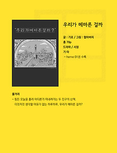 전체보기35 이미지 페이퍼 2018. 7. 12. 어부바 2018. 7. 12. 우리가 메마른 걸까 2018. 7. 12. [이메일 서명]1 2018. 6. 1. 2018 받으슈 -ㅅ-). 2018. 1. 1. 2008년의 철산동, 벽화마을 '삼십오미리'에서는 언급되지 않은 철산동입니다. 왜 언급이 되지 못했냐 하면, 만화 속에서는 서울시를 대상으로 하는 사진 공모전이 이벤트로서 등장하기 때문입니다.-철산동은 광명시에 속해 있습니다. 중계동 게시물과 마찬가지로 삼성 GX-1s 와 XENON 18-55 렌즈로 촬영된 사진입니다. #1 #2 #3 #4 #5 #6 #7 #8 #9 #10 #11 #12 SAMSUNG GX-1S / D-XENON 18-55mm / @철산동2008. 11 2008년은 여기저기에서 공공미술 프로젝트가 활발한 시기였습니다.칙칙한 골목길의 분위기를 바꾸어주는데 확실히 일조했죠.사람들은 골목길을 찾아다녔고, 사진을 찍고 공유했습니다. 제가 찍은 사진 속에는 벽화가 전혀 없습니다만, 재미있는 벽화들이 곳곳에 철산동 골목 곳곳에.. 2016. 8. 12. 2008년의 중계동, 104마을 어쩌다 보니 '삼십오미리'란 이야기 속에서 제대로 등장하지 못한 104마을입니다. 사진을 찍을 당시에는 '서울의 마지막 달동네'라는 타이틀로 막 유명해지기 시작했습니다.2008년도 사진인데, 8년전 사진이 되었네요. 삼성 GX-1s와 D-XENON 18-55 렌즈로 찍었던 사진 몇 장으로 추억해 봅니다. #1 #2 #3 #4 #5 #6 #7 #8 #9 #10 SAMSUNG GX-1S / D-XENON 18-55mm / @104마을, 중계동2008. 11 지금에 비하면 이 때는 사진 동호회의 숫자도 많았고 활동도 그만큼 잦았습니다.사람들은 특색있는 출사지를 찾았고, 옛 정취가 느껴지는 달동네는 좋은 소재가 되었습니다. 하지만 동네에서 셔터를 눌러대고 삼삼오오 모여 골목길을 돌아다니는 동호인들의 모습이 주민.. 2016. 7. 21. 미리뉴이어 돈데 기리기리 돈데 기리기리~ 2015년도 후딱가네용. 음하하하하 음하하하....하하....하아...... 내년에는 우리세상 찾아서 환상의 나라로 꼭. 2015. 12. 16. 거북이등껍질-늦은 여름 특집 8월이 가고 9월이 오고 있지만 아직까지는 조금 덥네요^^;막바지 더위 별 탈 없이 지내시길 바랍니다. 2015. 8. 23. 2009년의 이화동, 낙산공원. '삼십오미리'란 만화에서 호경이라는 인물이 가지고 다니는 일안 리플렉스 카메라(SLR)는 미놀타의 XG-A 라는 모델입니다. 바로 그 카메라로 촬영된 몇 장의 사진을 올려봅니다. (클릭하면 크게 보실 수 있습니다.) #1 #2 #3 #4 #5 #6 #7 #8 MINOLTA XG-A / MD 50mm / AGFA APX 400 / FDI @낙산공원, 이화동2009. 11 벌써 6년 전 사진이 되었네요. 당시에도 이미 이화동은 유명한 출사지 중 한 곳으로 많은 사랑을 받고 있었습니다. 요즘은 이런 곳보다는 아무래도 좋은, 독특한 식당이 있는 길이 화제입니다만, 사진을 찍고 즐기는 사람들이 많았던 시절이 참 그립습니다. 어떤 사진이든 시간이 흘러 꺼내보면 아름답다는 것을, 뒤늦게 깨닫습니다. - 집에 옛 앨범.. 2015. 6. 5. 이전 1 2 3 4 다음